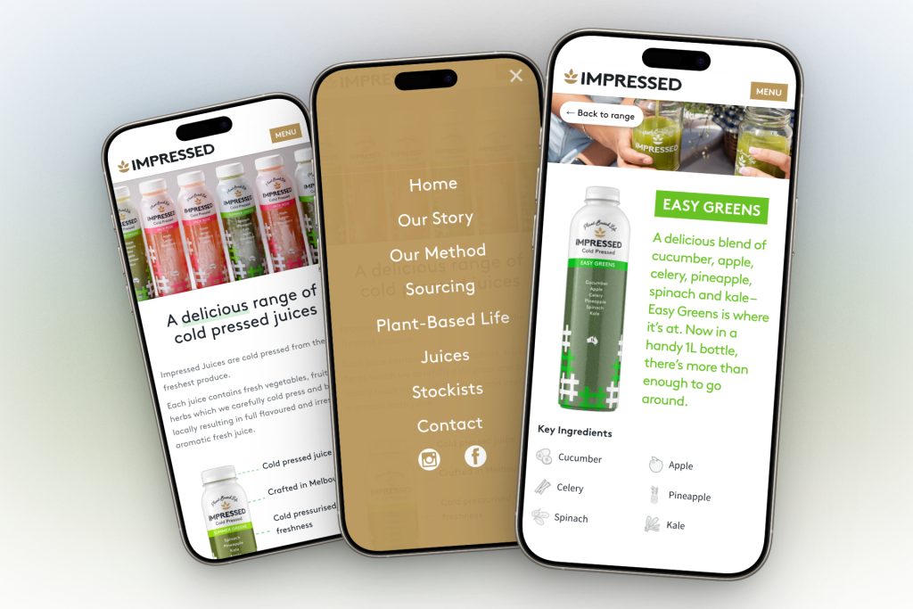Impressed Juices needed a website that reflected its premium positioning in the competitive cold-pressed juice market. Unlike many mass-produced brands, Impressed prioritises nutrient preservation through cold-pressing methods. The site had to communicate this authenticity, showcase the product range, and support a growing lifestyle-focused customer base.